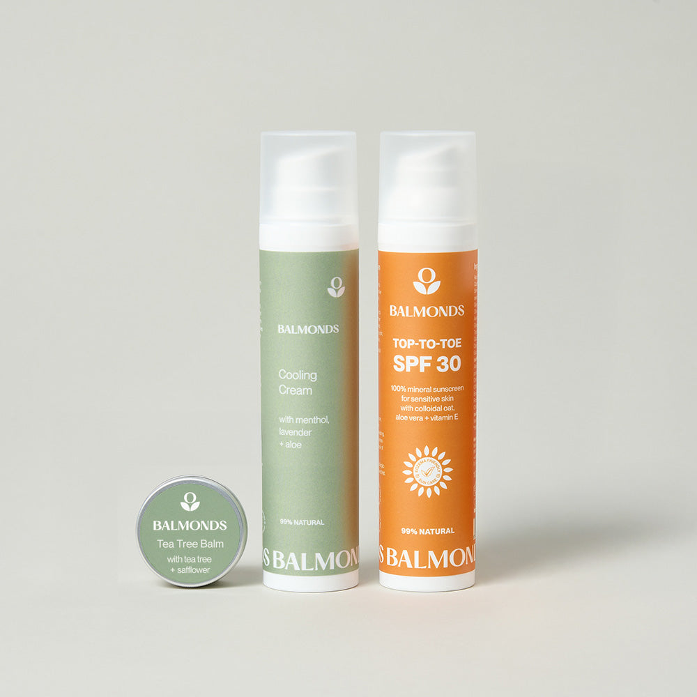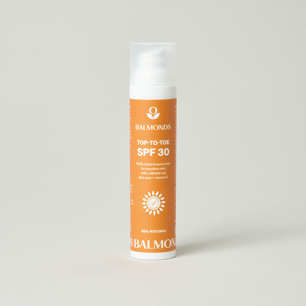 Balmonds formulations hit the sweet spot! It’s said that the most effective SPF is one that you like using and will reapply frequently through the day, and Factor 30 is generally considered enough protection even in the summer. SPF30 will filter out around 97% of harmful UVB rays*, providing substantial defence against sunburn, skin damage, and premature aging. Factor 50 only blocks one percentage more (98%) of harmful rays, so for us, user-friendliness wins the day. And whether it’s SPF30 or 50, it’s still important to reapply your sunscreen regularly, especially after activity or swimming.