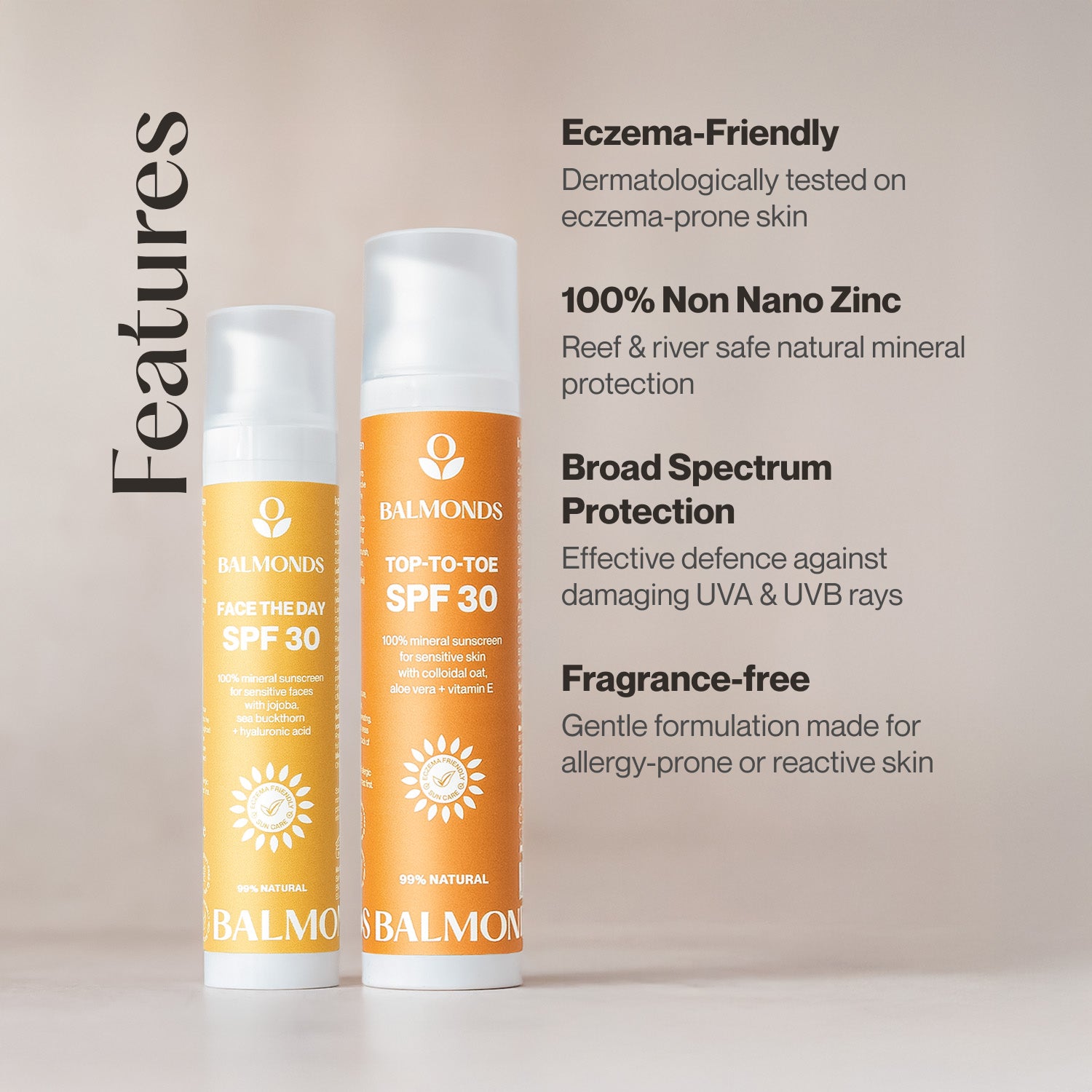 Balmonds sun care provides effective natural daily protection against the sun’s harmful rays throughout the year.