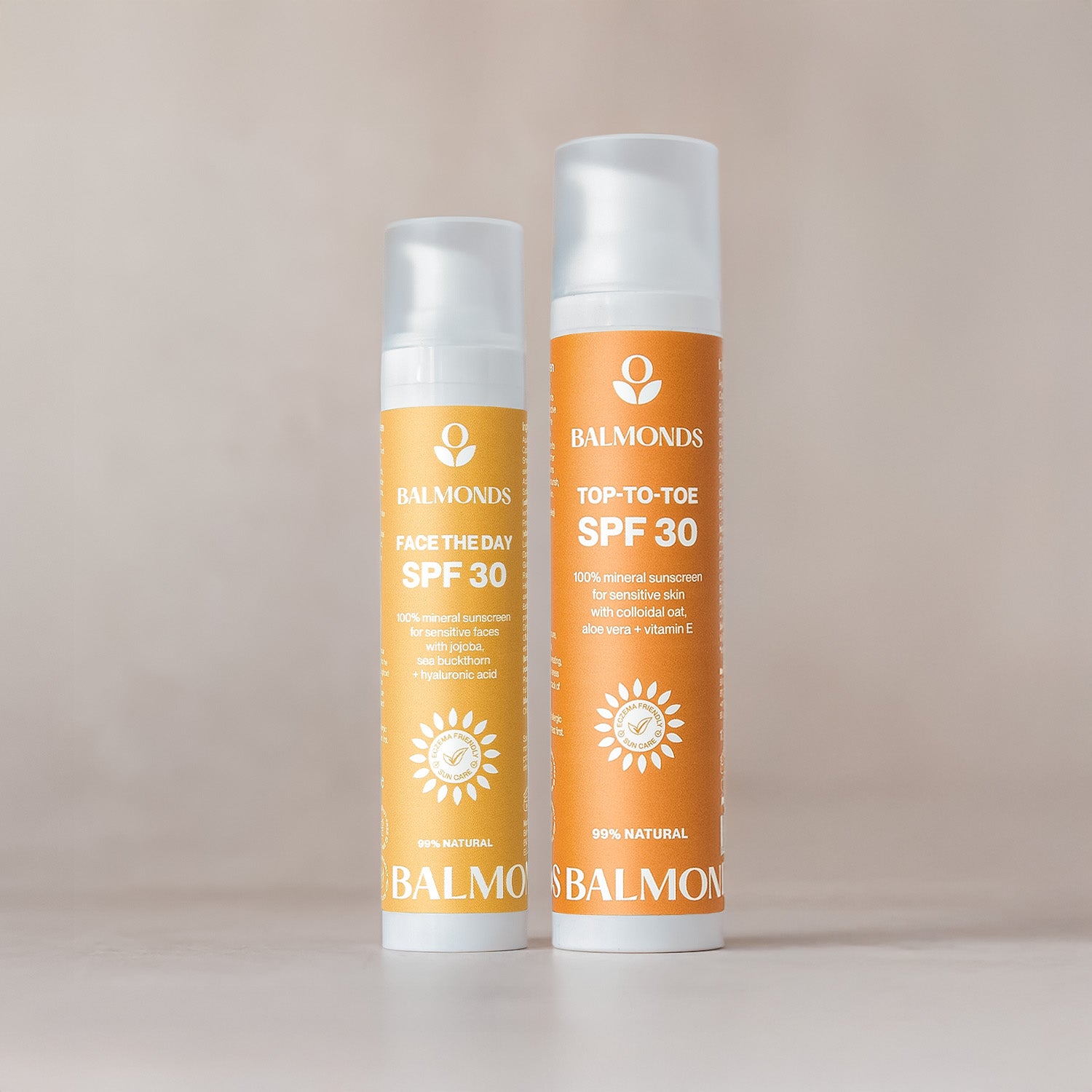 Balmonds formulations hit the sweet spot! It’s said that the most effective SPF is one that you like using and will reapply frequently through the day, and Factor 30 is generally considered enough protection even in the summer. SPF30 will filter out around 97% of harmful UVB rays*, providing substantial defence against sunburn, skin damage, and premature aging. Factor 50 only blocks one percentage more (98%) of harmful rays, so for us, user-friendliness wins the day. And whether it’s SPF30 or 50, it’s still important to reapply your sunscreen regularly, especially after activity or swimming.