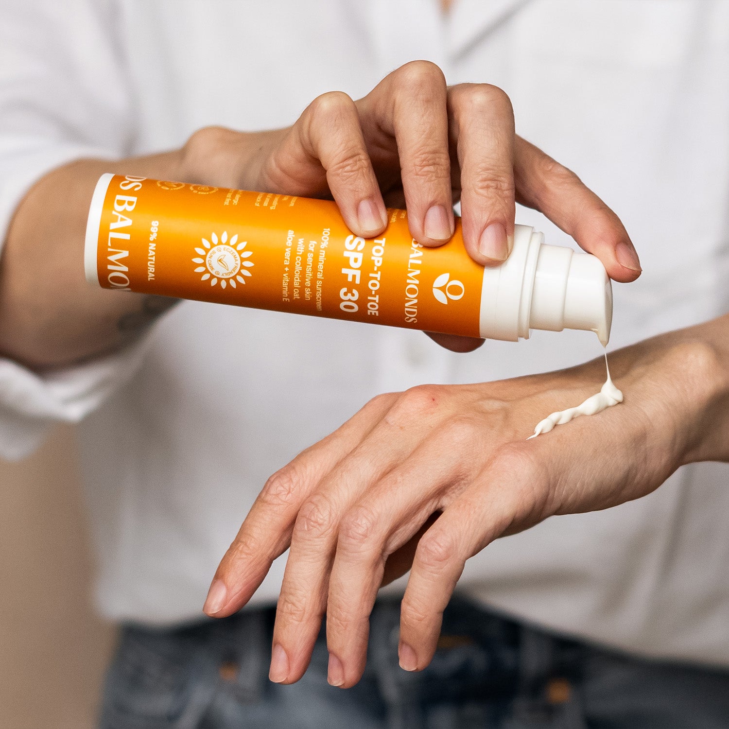 Balmonds formulations hit the sweet spot! It’s said that the most effective SPF is one that you like using and will reapply frequently through the day, and Factor 30 is generally considered enough protection even in the summer. SPF30 will filter out around 97% of harmful UVB rays*, providing substantial defence against sunburn, skin damage, and premature aging. Factor 50 only blocks one percentage more (98%) of harmful rays, so for us, user-friendliness wins the day. And whether it’s SPF30 or 50, it’s still important to reapply your sunscreen regularly, especially after activity or swimming.